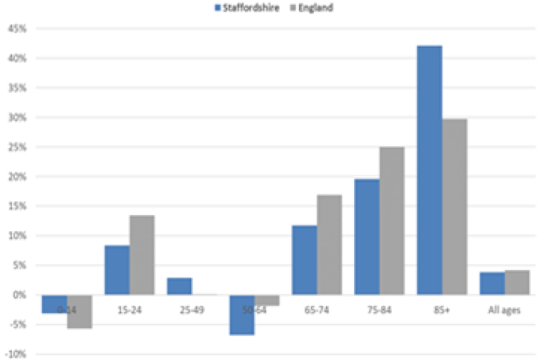 - Staffordshire’s elderly population (85+) will increase by 42% - a rise of 10,200 people.